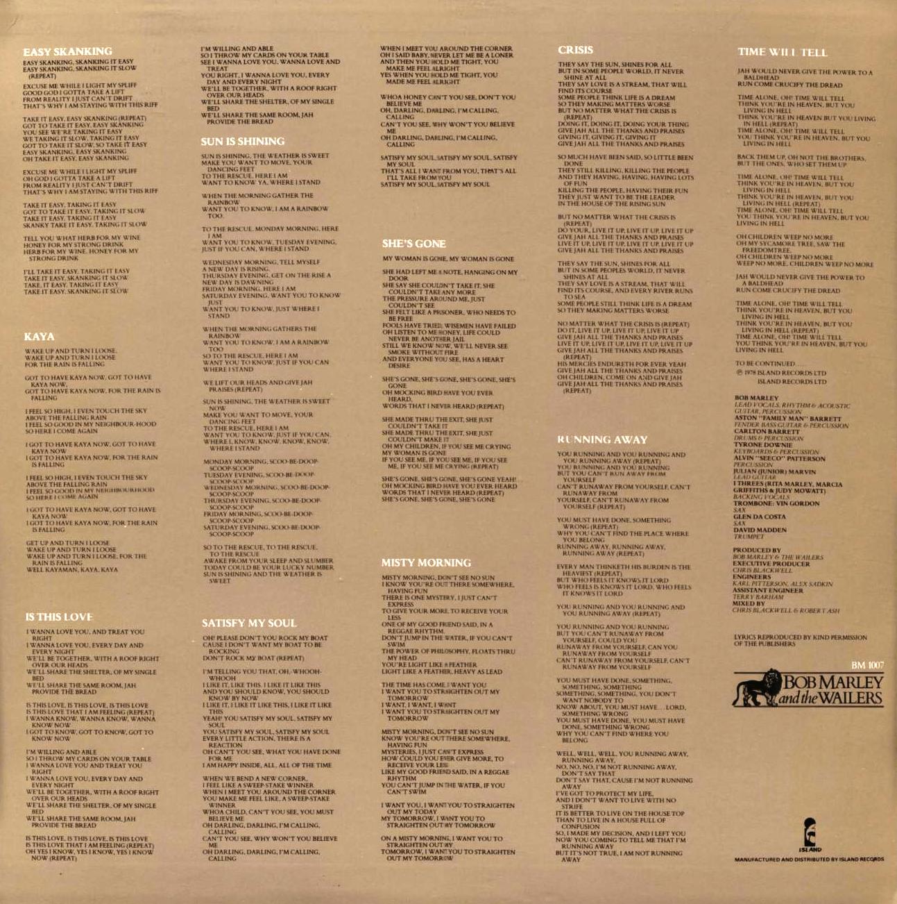 Percussion: Aston Barrett, Carlton Barrett, Alvin Patterson, Tyrone Downie